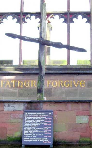 Now in Coventry, of course, we’re used to seeing the words “Father, Forgive” displayed prominently. They’re written in the ruins of the old cathedral, destroyed by German bombing 85 years ago this month. I praise God that anyone in Coventry was able to think of forgiveness at the time of that bombing. There were others, I’m sure, who found it difficult or impossible to do so. But the story is well known. After the war, volunteers from Germany helped to rebuild Coventry Cathedral, just as volunteers from Britain helped to rebuild the cathedral in Dresden, where the old cathedral had been destroyed by British bombing. It’s a remarkable story of forgiveness and reconciliation, and a noble part of Coventry’s history.
